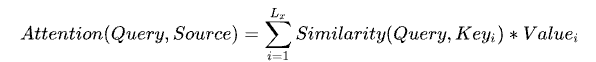 - f2函数代表Encoder对输入英文单词的某种变换函数,比如如果Encoder是用的RNN模型的话,这个f2函数的结果往往是某个时刻输入后隐层节点的状态值;g代表Encoder根据单词的中间表示合成整个句子中间语义表示的变换函数,一般的做法中,g函数就是对构成元素加权求和,即下列公式