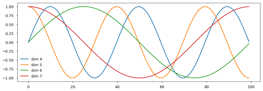 # 3 画图 绘制pe位置矩阵的第4-7列特征曲线